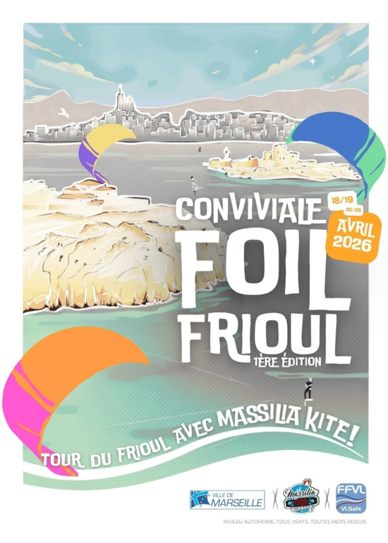Première édition de la Conviviale Foil Frioul, organisée par Massilia Kite ! Un événement convivial autour du kitefoil avec le Tour du Frioul, au large de Marseille.