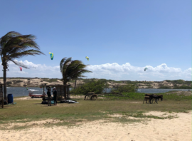 Vu les conditions idylliques de Kitesurf sur ce spot au Brésil depuis 2024 les moniteurs de Air2Kite Boardercamp Kitesurf créer par Sébastien Grimont avec l'aide de Guillaume Chastagnol décident de proposer des sessions de Kitesurf en partenariat avec Virgine Rochette.