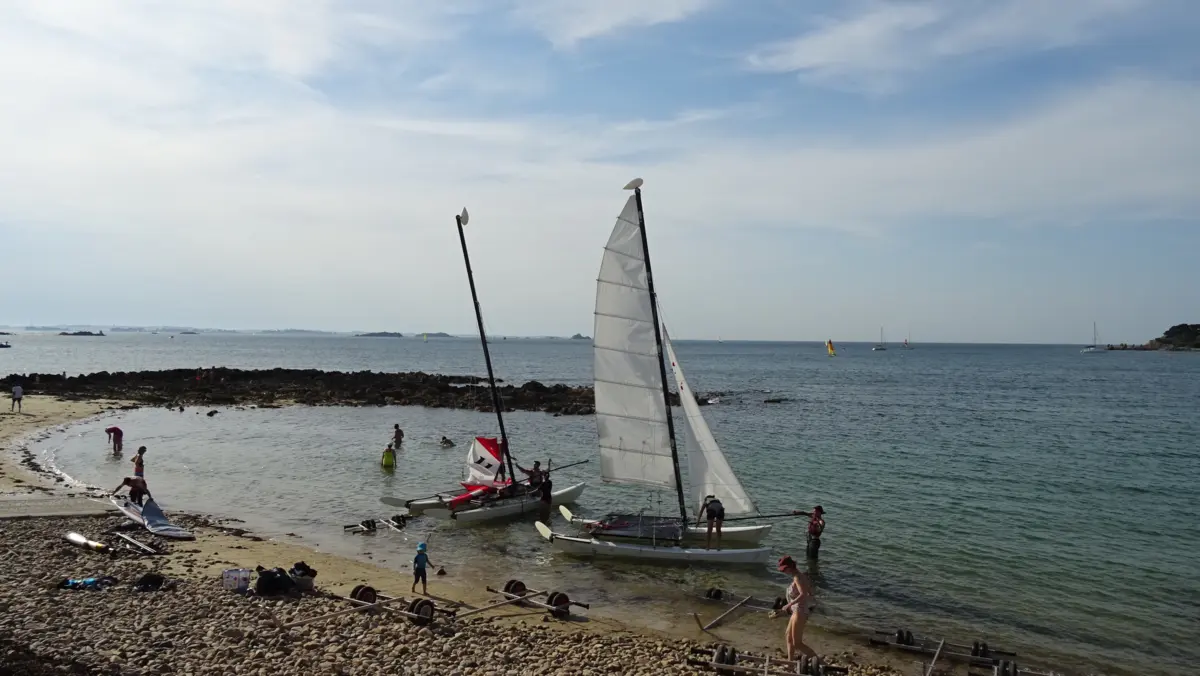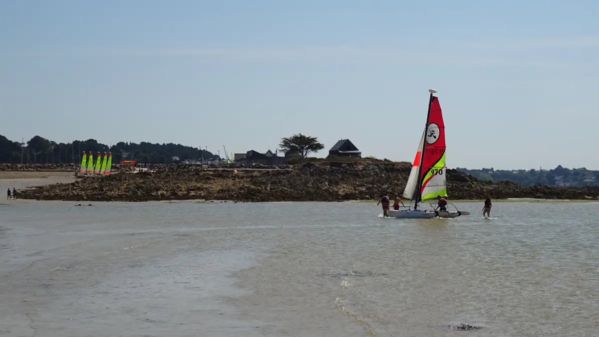 A marée basse, la petite anse se vide (sable mouillé), c'est plus facile de gréer et de partir.