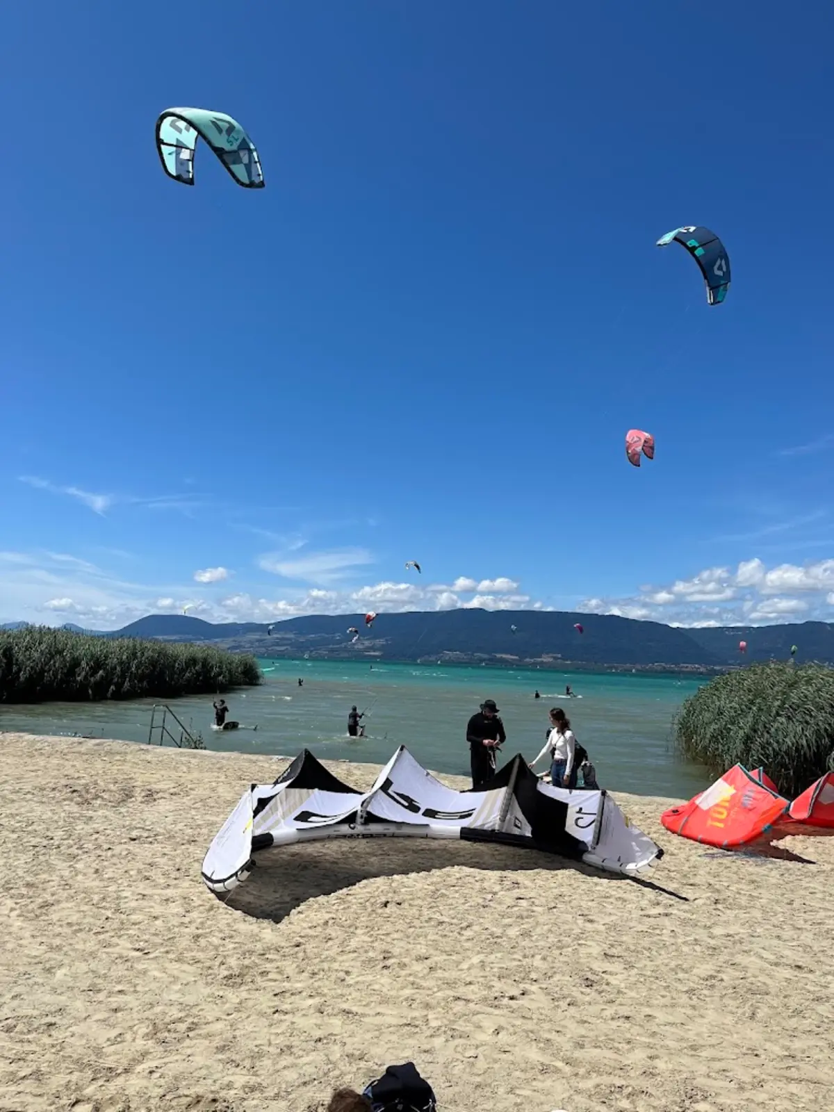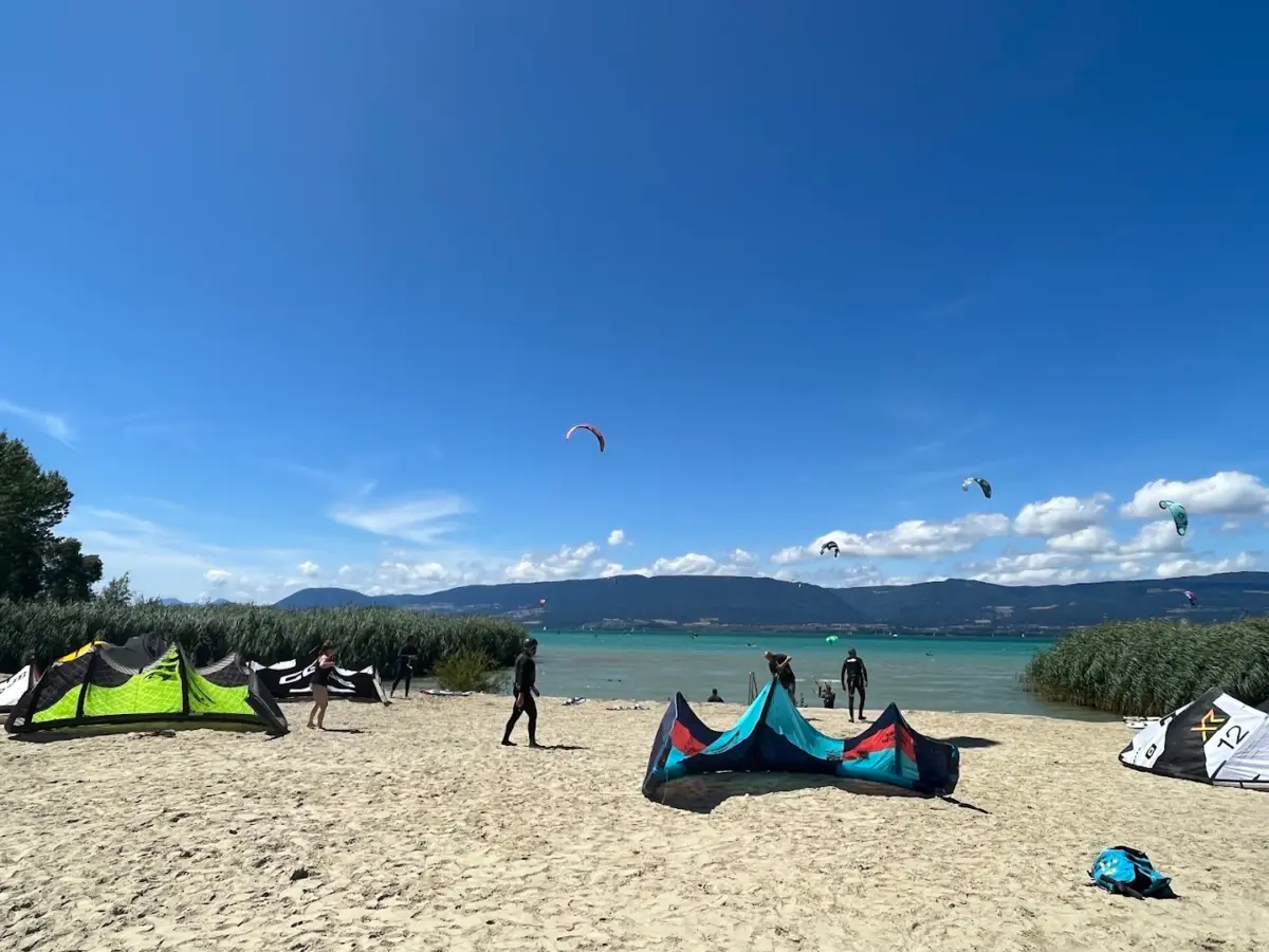 Portalban est un super spot d'ouest et de sud-ouest. C'est une jolie plage de sable et on a le fond assez loin. Le club local (www.swisskite.ch) est très actif et ils organisent une fois par année le King of the Lake en général fin septembre. Ils ont aussi un service de coaching des débutants, un bateau de sécu et plein d'autres trucs. On ne peut que vous recommander de rejoindre le club.