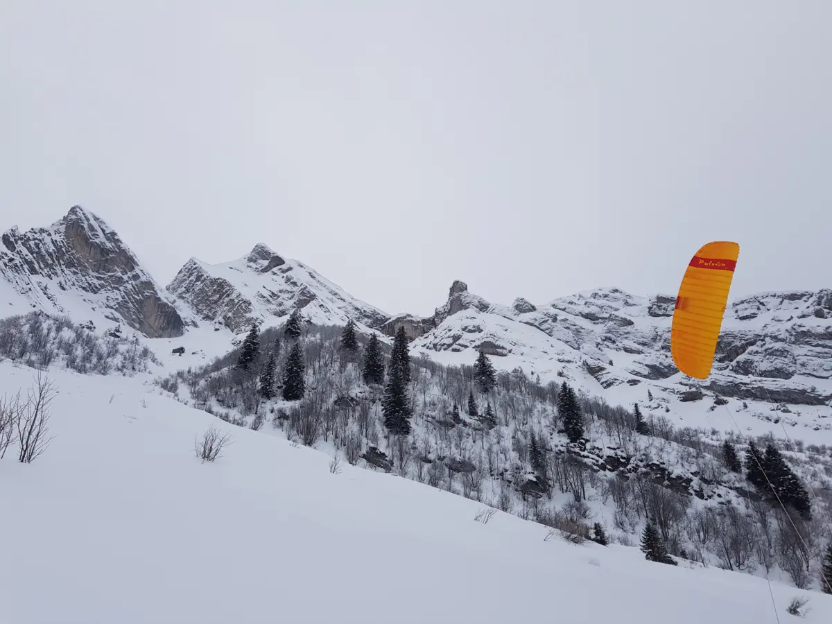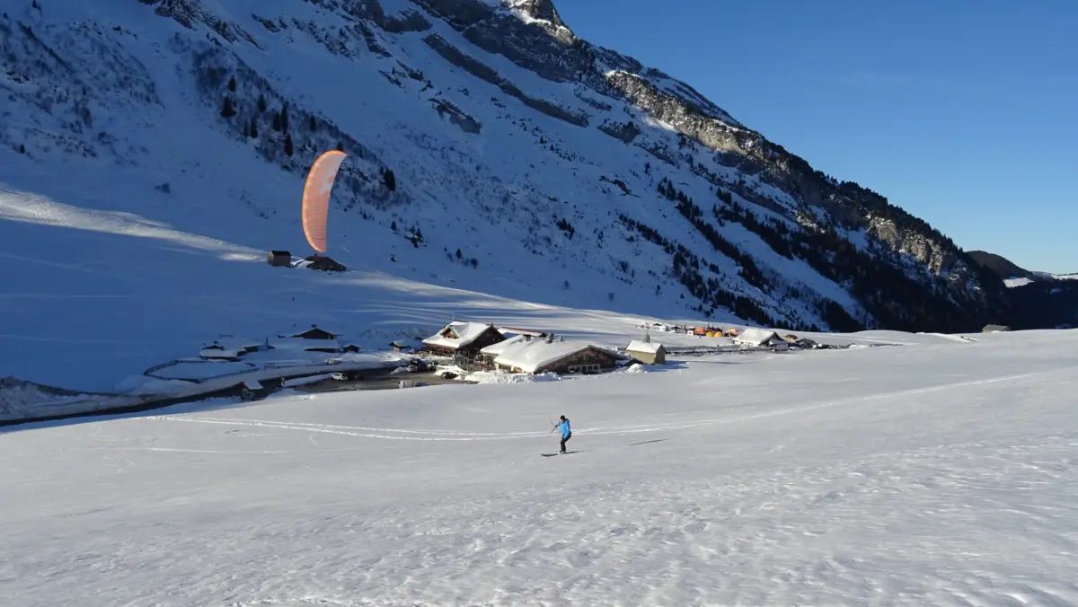 Le vent de NO (plutôt rare) permet de descendre un peu plus bas en direction de la Clusaz.