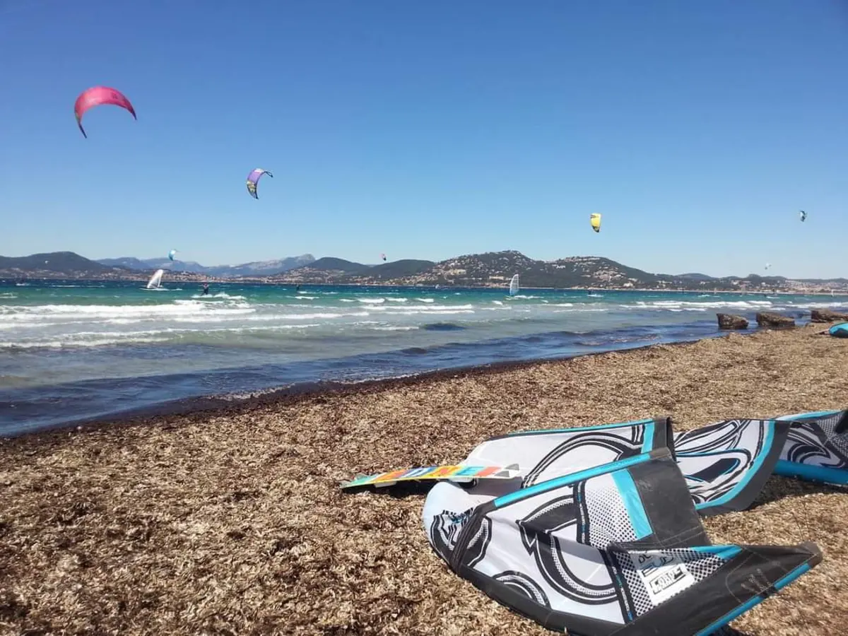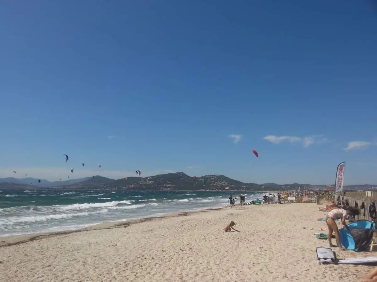 La plage est pas grande, elle est délimitée par des canisses. La route est juste derrière, donc décollage avec la main sur le largeur. Débutants, c'est pas vraiment le bon spot.