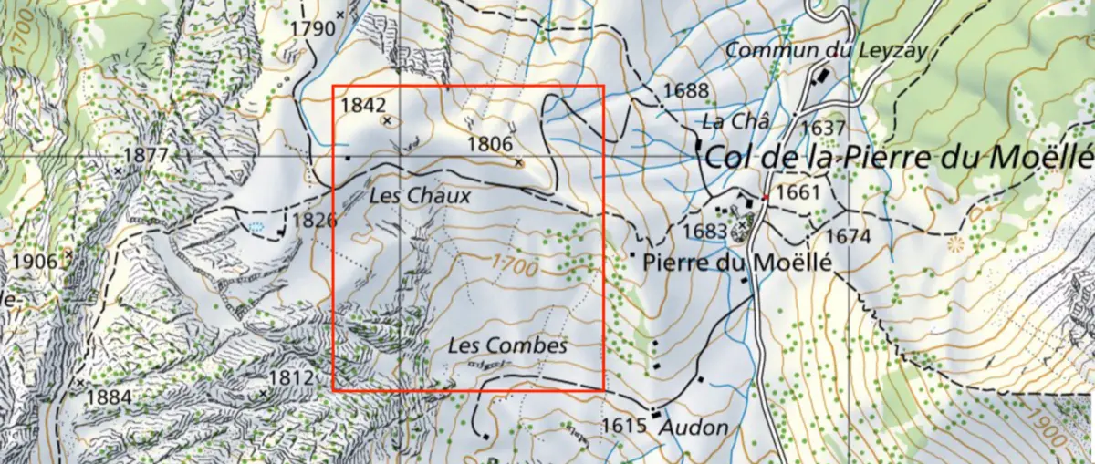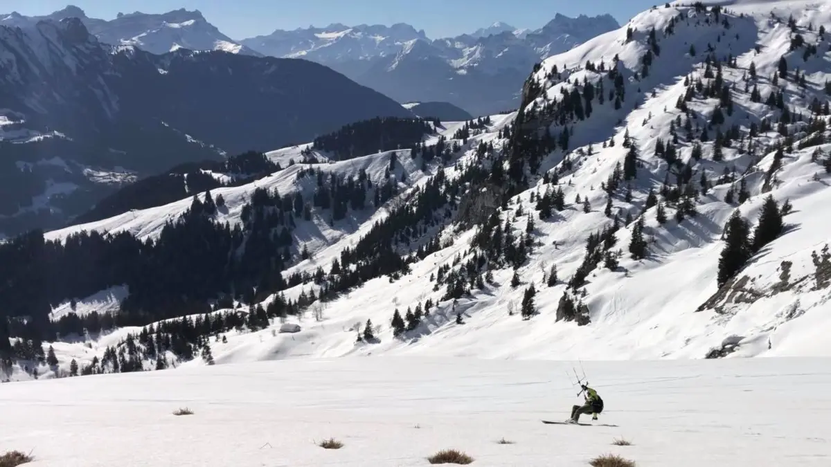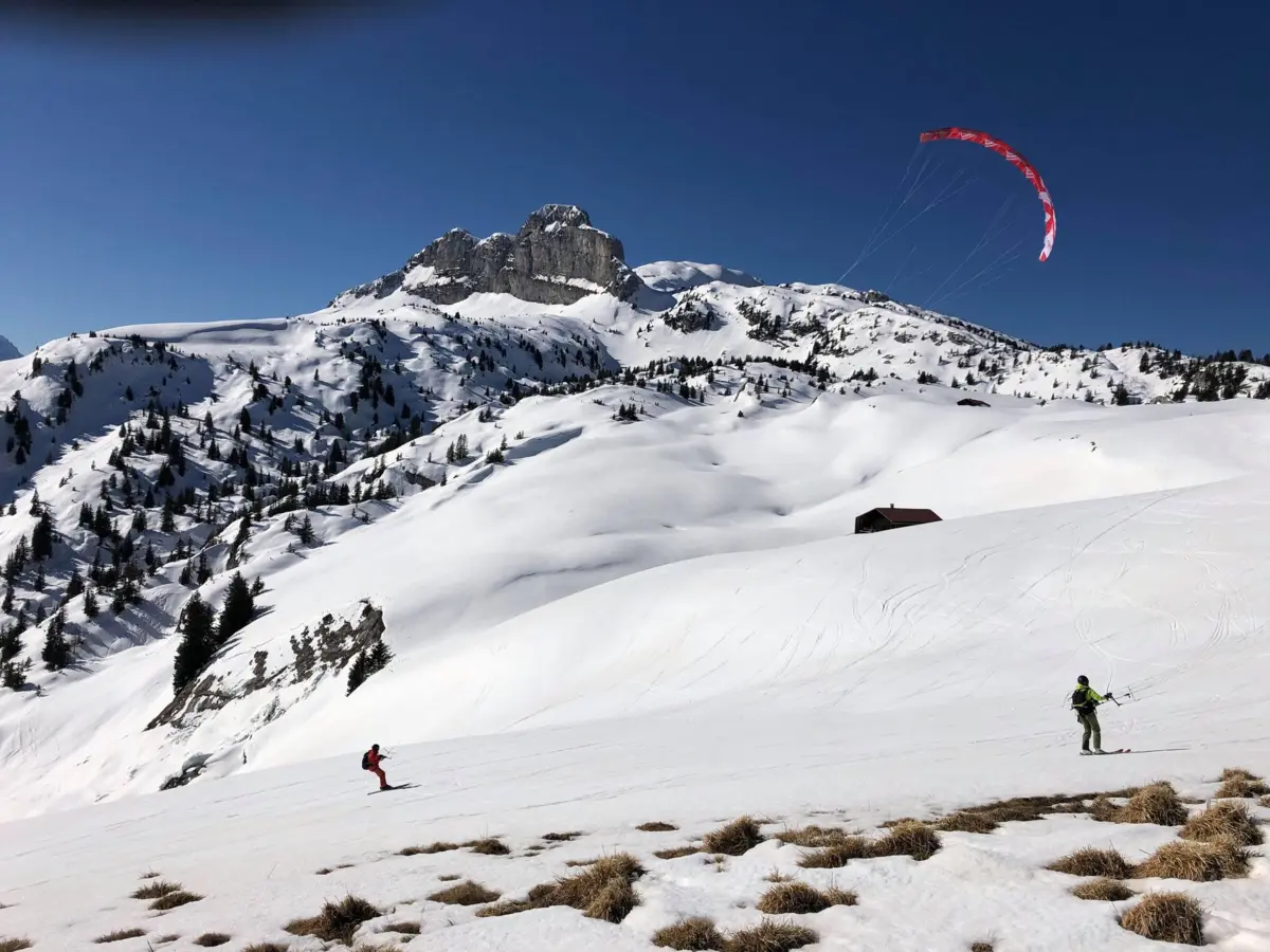 Accès: par la Sud, remontez en peaux depuis le départ du télésiège de Solepraz (domaine de Leysin). Attention à ne pas parquer sa voiture là-bas, car la route est réservée en hiver pour la navette ski-bus Leysin-Les Mosses. Accéder par le domaine skiable de Leysin (possibilité de couper en descendant la piste de Solepraz pour s’éviter un peu de dénivelé (attention au danger d’avalanche) ou parquer aux Mosses et prendre le ski-bus (départ toutes les 30min). Le dénivelé en peaux est d’environ 300m si vous pouvez finir la montée tiré par la voile ou env. 500m si uniquement la crête est exploitable.