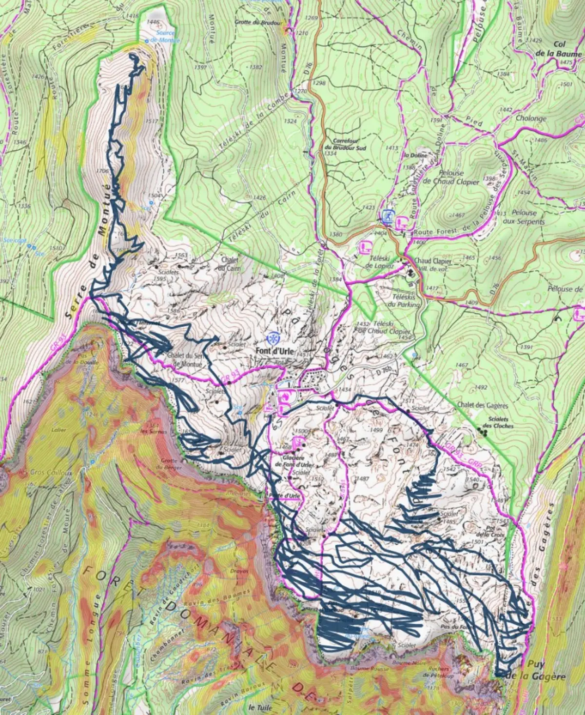 Spot incontournable dans le snowkite, le site de font d'urle est un terrain free ride environ 300 hectares dans un cadre insolite une aérologie de nord et de sud allimentée par la vallée du rhône Altitude: 1500m-1700m Surface: plateaux, combes,... Pas de marche d'approche sauf par vent de sud. Niveau: débutant à confirmé (se renseigner sur les zones conventionés FFVL et danger du site) Attention: présence de falaise au nord du plateau ainsi que scialet. Site conventionné FFVL
