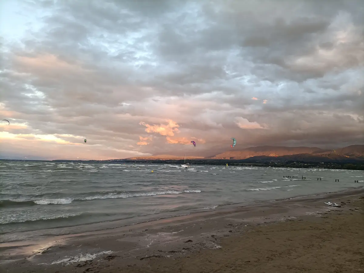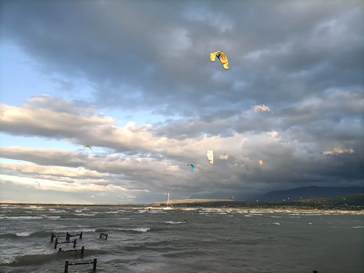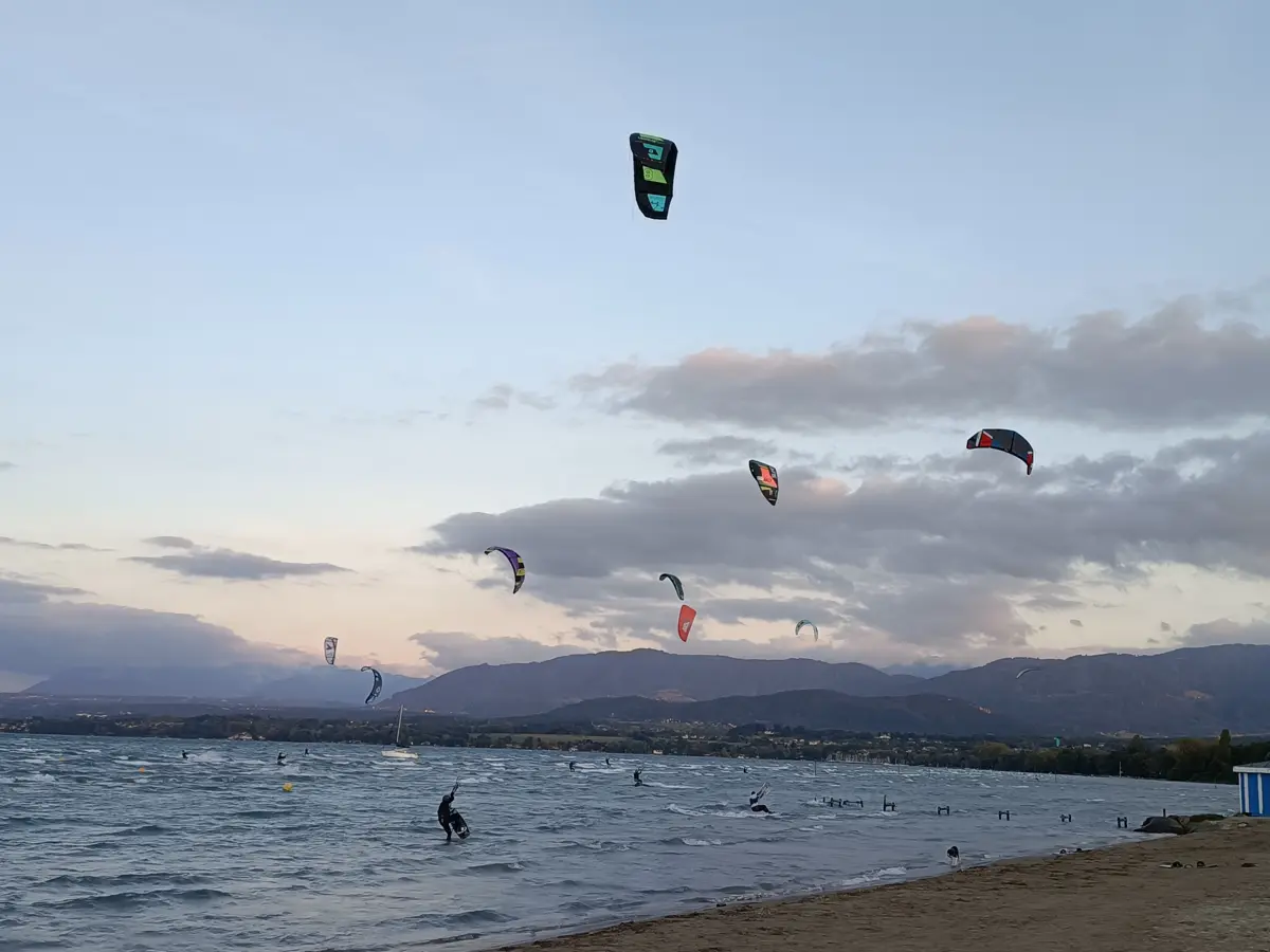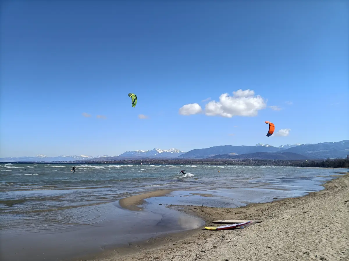 Attention également lors des fortes bises, le décollage les pieds dans l'eau est privilégié car en cas de largage ou d'incident les ailes finissent dans les restaurants d'à coté.