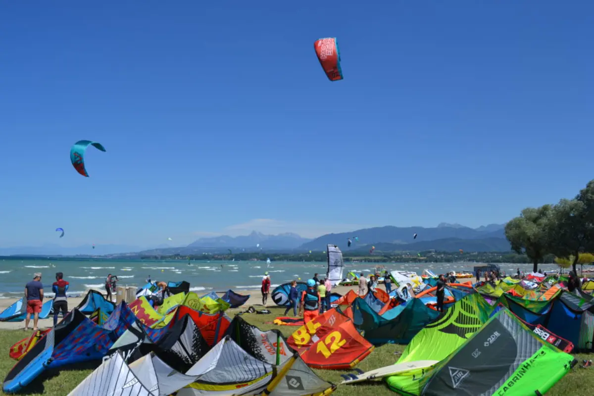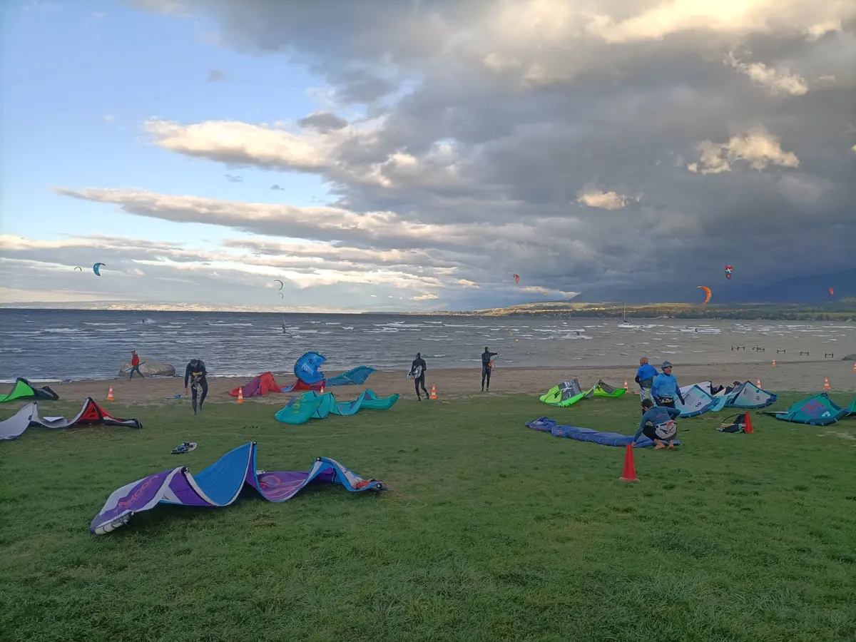 Ils sont installés dés que la bise est calée durablement. Les ailes doivent être gonflées, gréées et stockées (avec les lignes pliées) dans cette zone. Les ailes qui ne sont pas utilisées doivent être stockées sur la partie arrière de la kite-zone, afin de laisser libre la parti au bord de l’eau pour le gréage. -