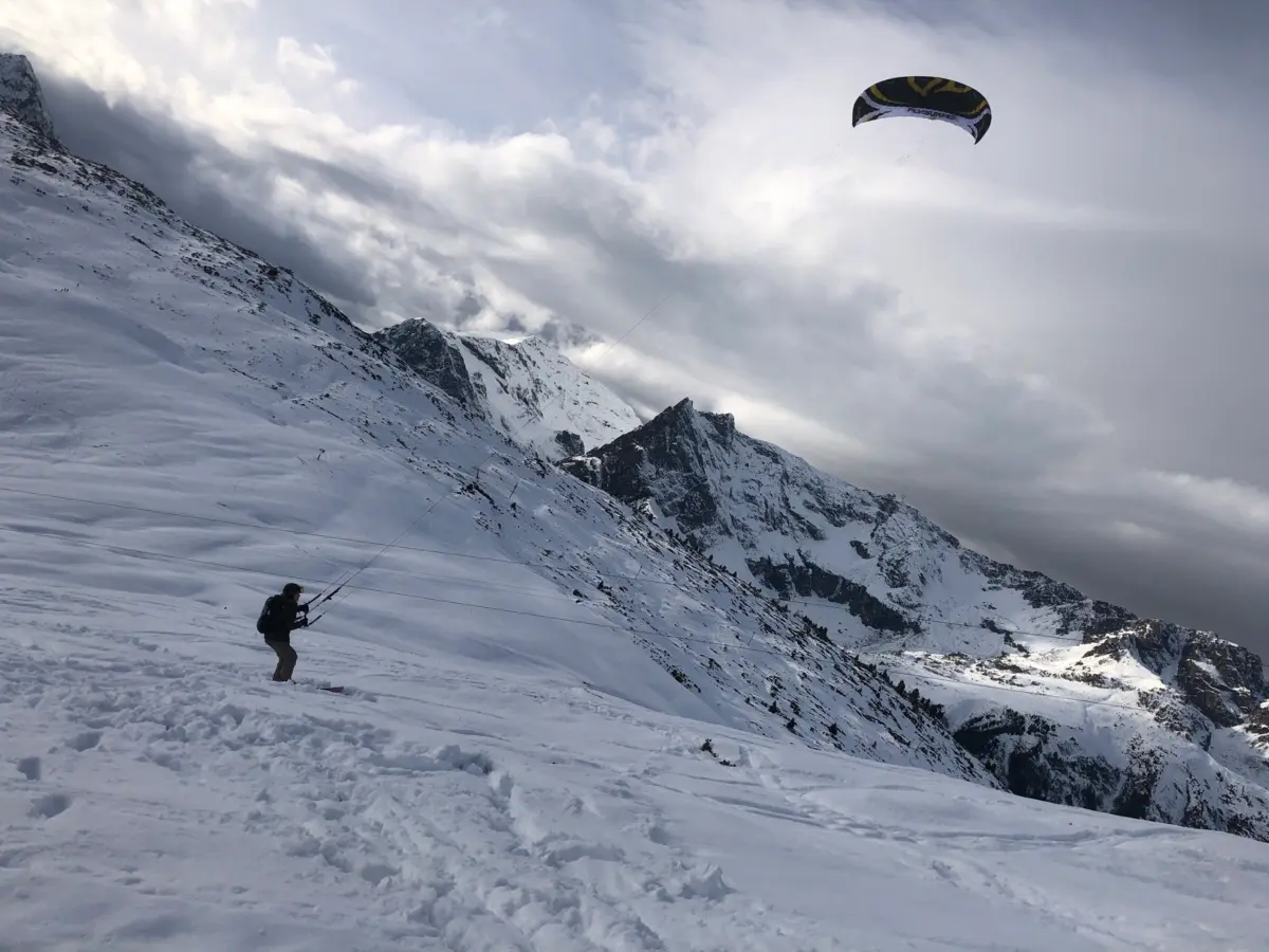 Dans la zone de ski de randonnée près de Chamonix se trouve Le Tour, et plus haut au Col de Balme il y a un spot de snowkite de taille moyenne qui est proche des remontées mécaniques. Nous y sommes allés deux fois en décembre 2022 lorsque les restrictions liées au Covid avaient fermé les remontées. Nous sommes montés à pied et, face à la montagne, avons gardé la gauche jusqu'au dernier télésiège du Col de Balme. Nous pouvions voir le refuge du Col de Balme depuis notre zone d'installation. La randonnée a duré environ 45 minutes à une heure. Vous pouvez obtenir un forfait journée à la station Le Tour Col de Balme et prendre les remontées mécaniques, ce qui vous permettrait d'y être en 15 minutes en vous amenant jusqu'au refuge d'où vous pouvez installer votre snowkite. Nous ne sommes pas allés jusque-là, donc nous avons dû rider avec le vent du sud-ouest qui semblait être un thermique qui s'établit depuis la vallée qui commence à Chamonix et mène jusqu'à Argentière tout en haut.