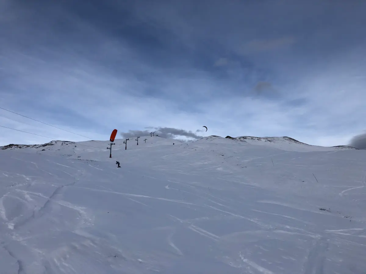 When we went the wind was south west that goes up through the valley and we saw a couple of snowkites further up the hill when a thermal wind at the end of the day kicked in.