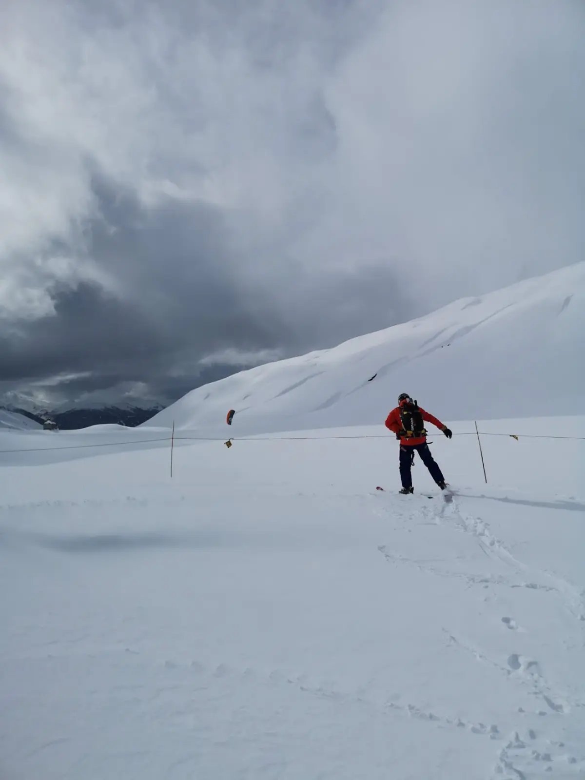 Vous êtes dans un domaine de montagne, le spot de snowkite est dans une zone non sécurisée. La partie plate est sans danger, les faces par contre sont vites assez raides. Donc le trio Arva, Pelle, Sonde, est obligatoire (accès Lancebranlette, accès Lac Sans Fond,...).