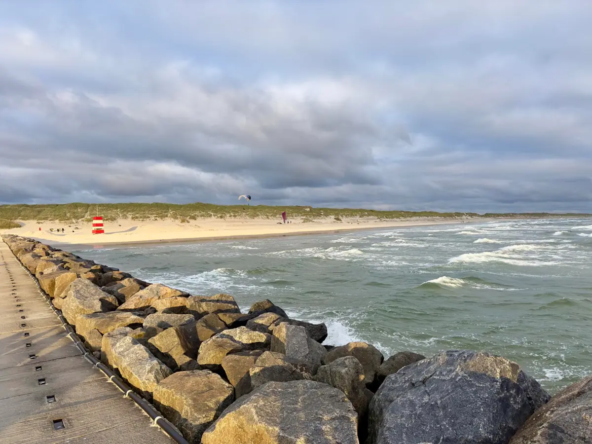 Attention à la digue et aux autres utilisateurs. L'école de surf a beaucoup de clients.